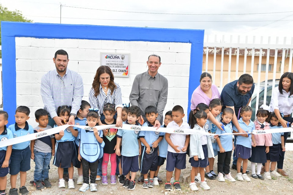 Acuña, Coahuila; 09 de octubre de 2025.- El alcalde Emilio De Hoyos Montemayor encabezó la entrega de la barda perimetral del Jardín de Niños Lucila González, una obra que brinda mayor protección y tranquilidad a los alumnos, maestras y padres de familia.