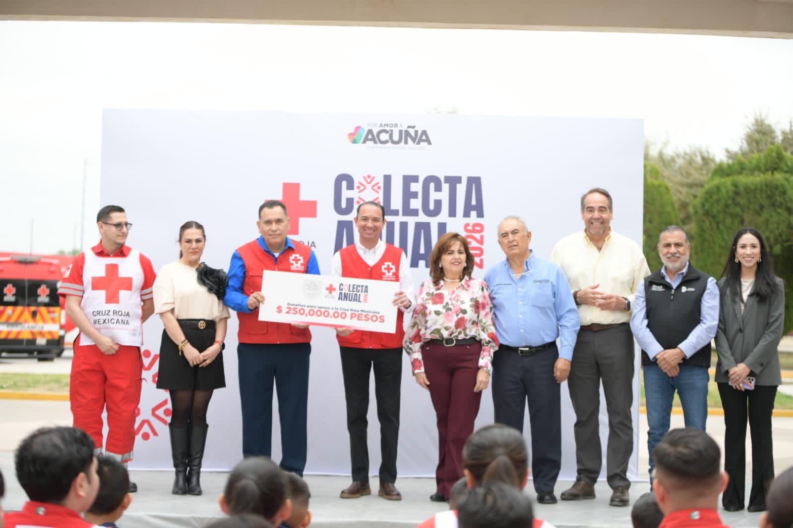 Además, se destacó la trayectoria de 116 años de la Cruz Roja Mexicana, así como los 18 años de trabajo del Patronato local, organismos que han contribuido de manera significativa a fortalecer la atención humanitaria en Acuña.